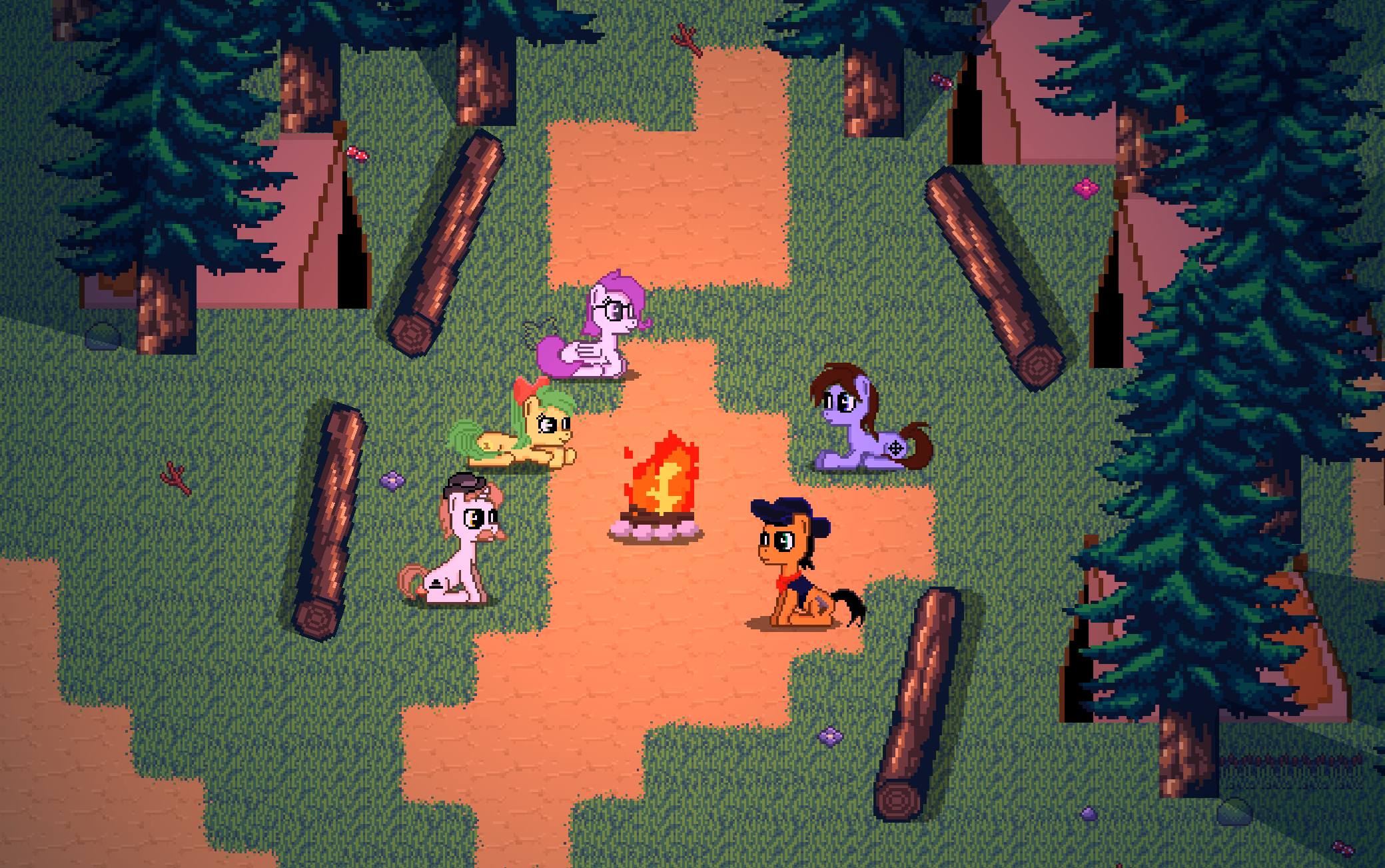 This game is about a small group of ponies spending a night around campfire and sharing creepy stories to each other.